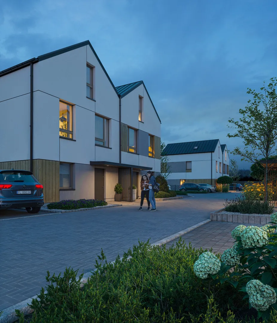 Dbając o środowisko i ekologię każdy dom został przystosowany do używania najmocniejszych ładowarek do samochodów elektrycznych oraz ogrzewany jest energooszczędnymi pompami ciepła. Ewentualna rozbudowa o panele fotowoltaiczne na dachu z magazynem energii może być łatwo połączona z istniejącą instalacją.