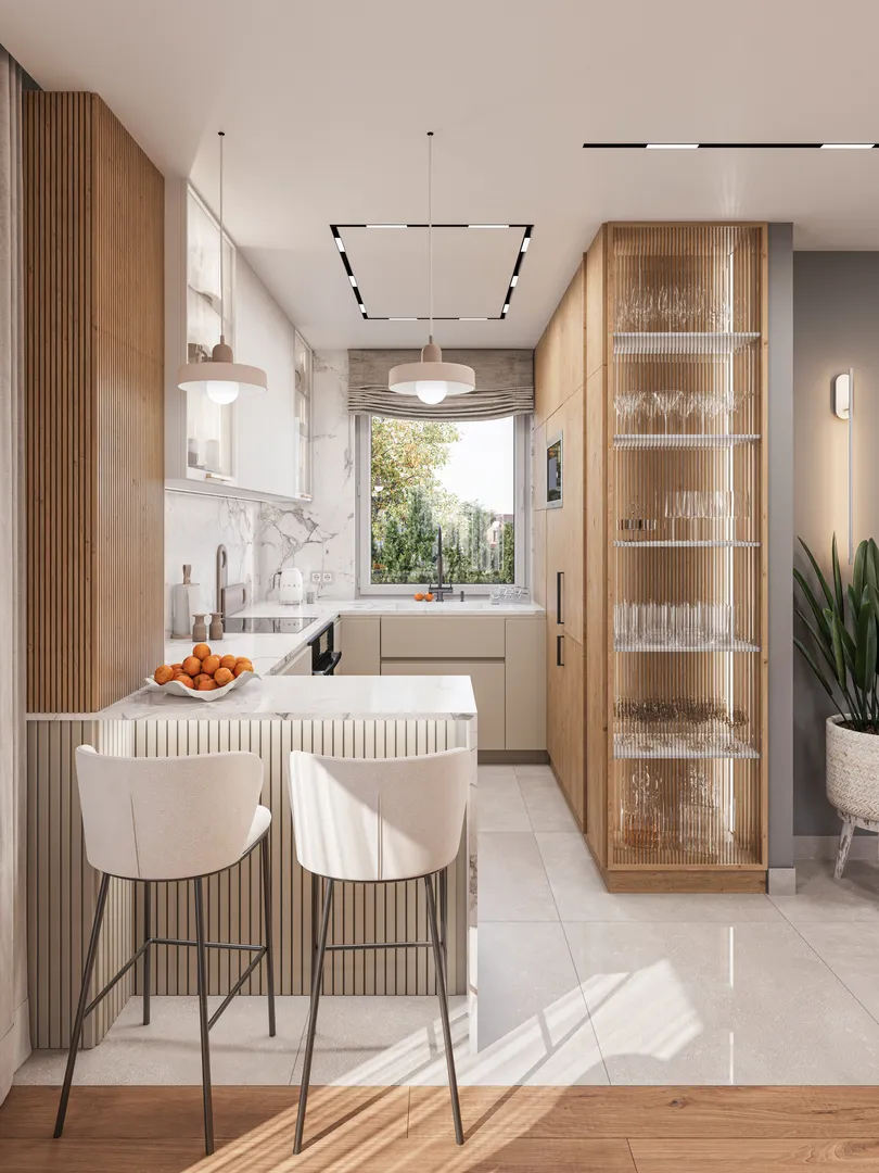 Parter stanowi przede wszystkim część dzienna - przestronny salon z aneksem kuchennym i schowkiem pod schodami o powierzchni 29,91 m². Do dyspozycji mamy również wiatrołap z miejscem na dużą szafę w zabudowie, funkcjonalną łazienkę i pomieszczenie techniczne z pompą ciepła.